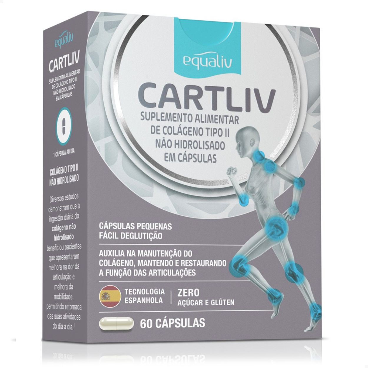 Colágeno Tipo II – CartLiv Equaliv 60 cápsulas é um suplemento alimentar de Colágeno tipo II não hidrolisado em cápsulas. Oferece a principal proteína da cartilagem através da tecnologia espanhola B-2Cool®, com alta eficácia devido à conservação da forma nativa do colágeno tipo II.